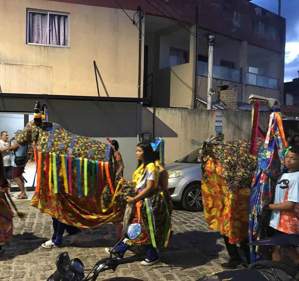 Os bonecos gigantes representando o rei e rainha do Congo, os blocos Folia de Rua, Turma do Mar, Pastoril Jardim das Flores, entre outros. A Turma do Mar, da qual faço parte é um bloco tradicional de nadadores de Natal, que praticam nado em águas abertas, principalmente na enseada do Morro do Careca, próximo a Vila.